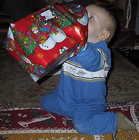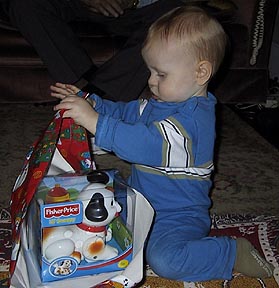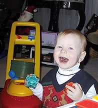 Samuel celebrates Christmas with Grandaddy Edgar and Grandmother Doris