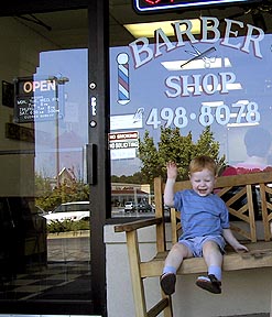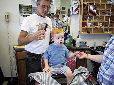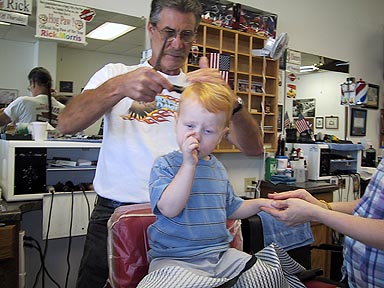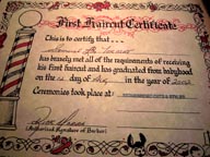First haircut certificate signed by Rick Morris, the barber, August 12, 2002